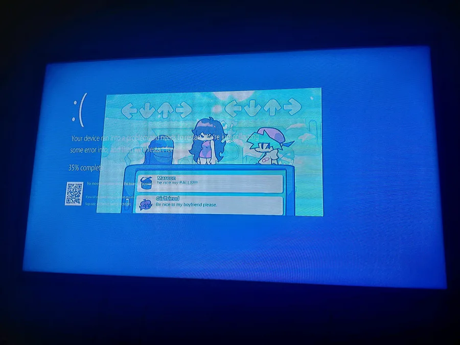 be nice to my balls screen of death :3