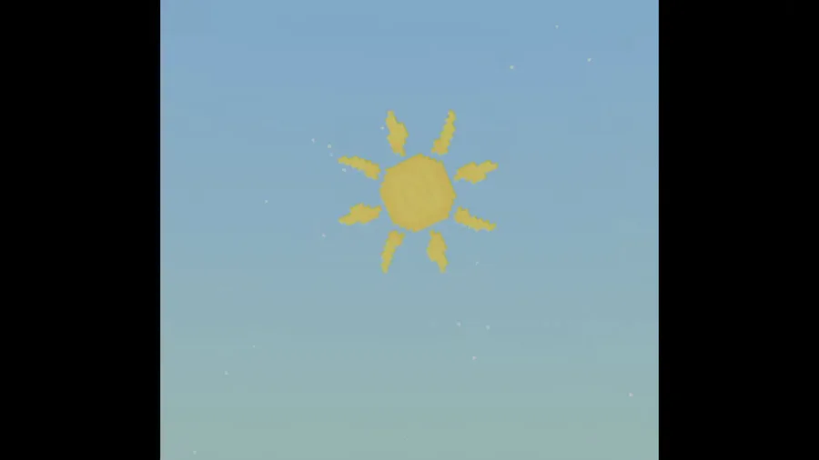Very weird sun design. I wanted it to not just be a yellow dot. Experimented with a couple different designs. I also wanted to keep it pixel-y. It also syncs with the main light direction.