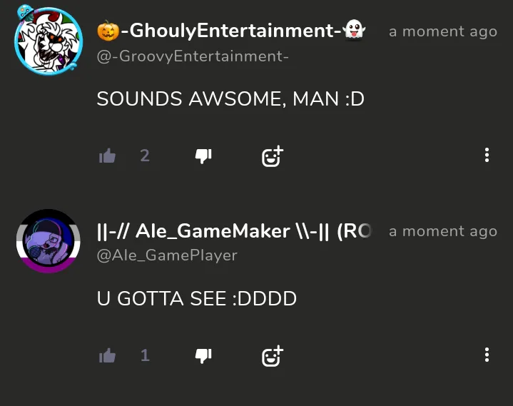 Excited Ale saying to Groovy to see the new OCs XD