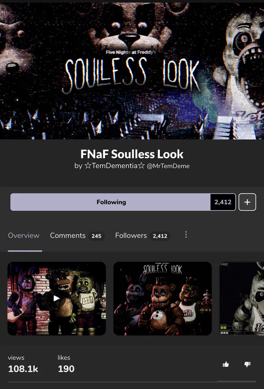 This is not a call out post but I wanted to say that I think this is so dumb and unfair that an original project is being shafted for a FNAF 1 remake. Now Souless Look is good don’t get me wrong. But it’s kinda sad looking Cater’s being left in the dust.
