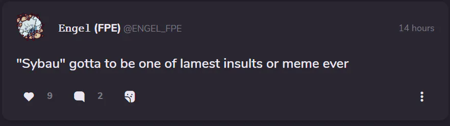 "Sybau" is not even an insult, it's a slang word used to tell someone like you to SHUT YOUR THEIR MOUTH.