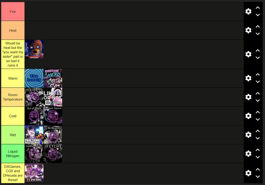 anyways guys heres my dagames fnaf song tierlist
