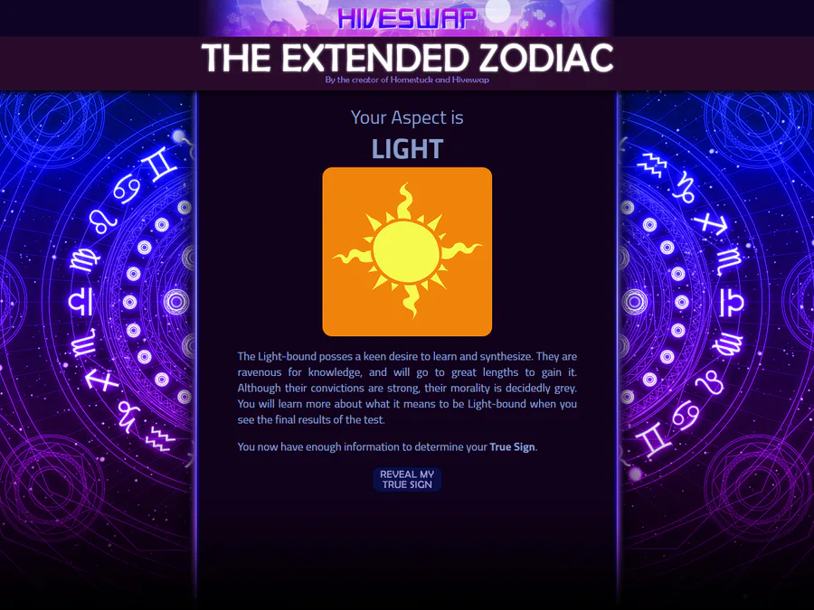 Taking the Extended Zodiac Quiz! Turns out I'm a Derse Dreamer! (my regular Zodiac is Pisces)