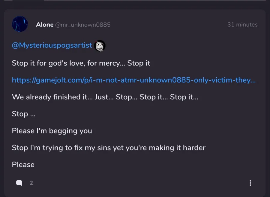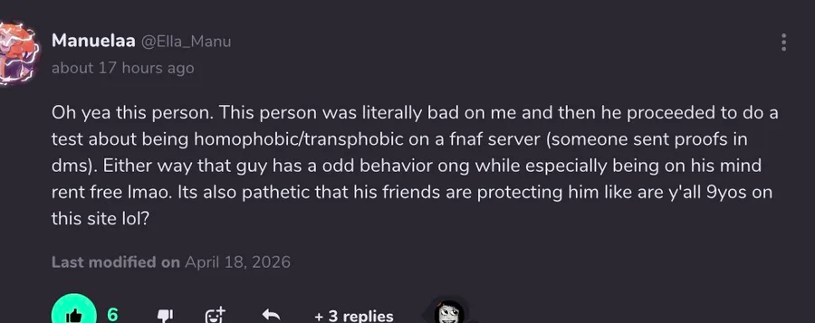ill block them but i feel like yall should as well since they act just like unknown and have sent me a lot of death threats previously