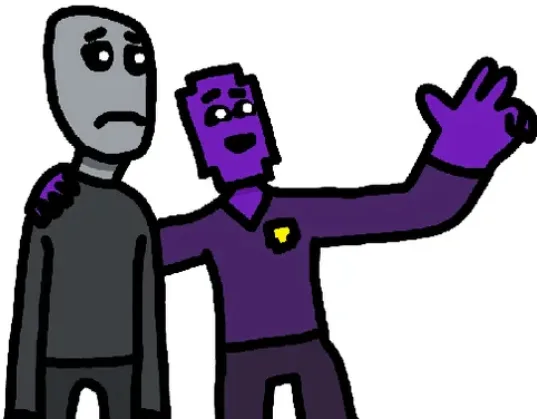 Decently known memes but as Purple Guy