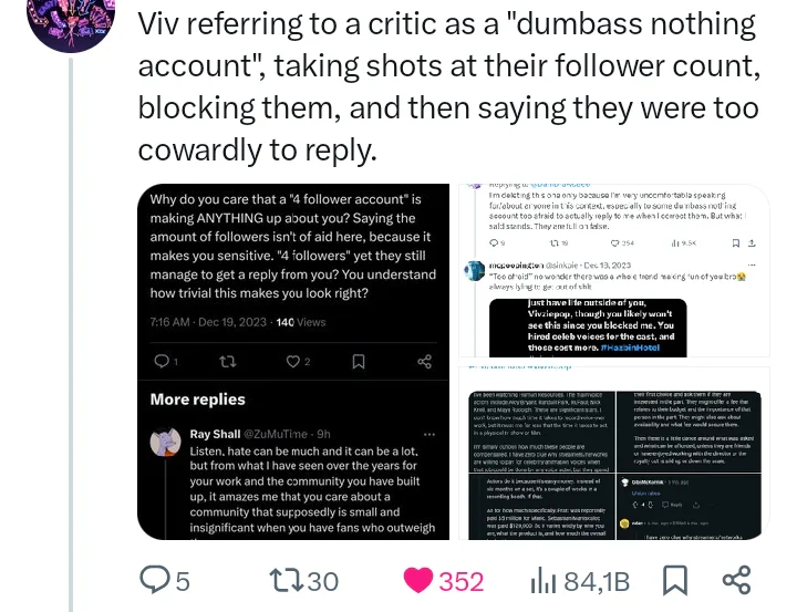 Some screen shots ı take from X (Twitter) you can see all the thinks from "vivziepop receipts" btw.