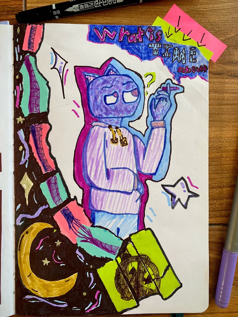 I spent some time experimenting with colors and whatever I had until this came out. It’s not as polished as my other drawings, but I think purple works well to represent chaos (plus, it’s my favorite color)