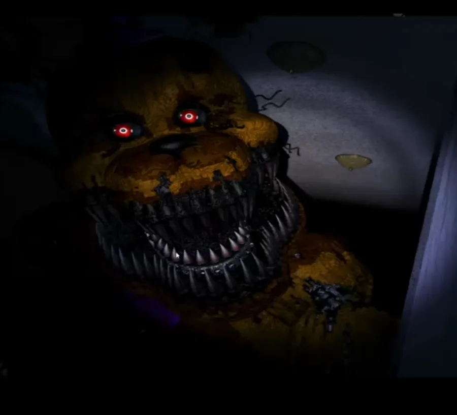 I tried recreating Nightmare fredbear at the left hallway door from fnaf 4