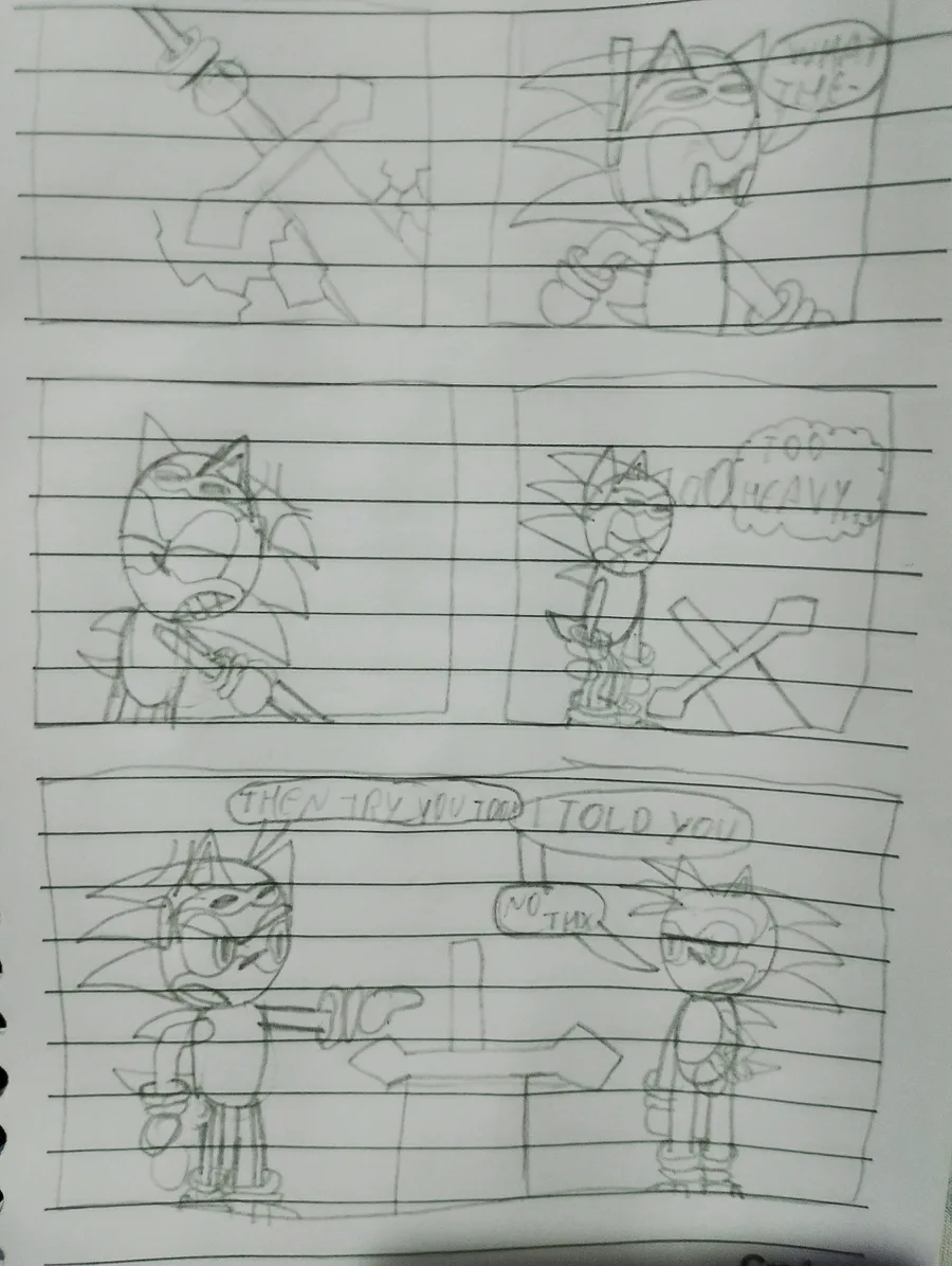 he tries to get the sword but its too heavy