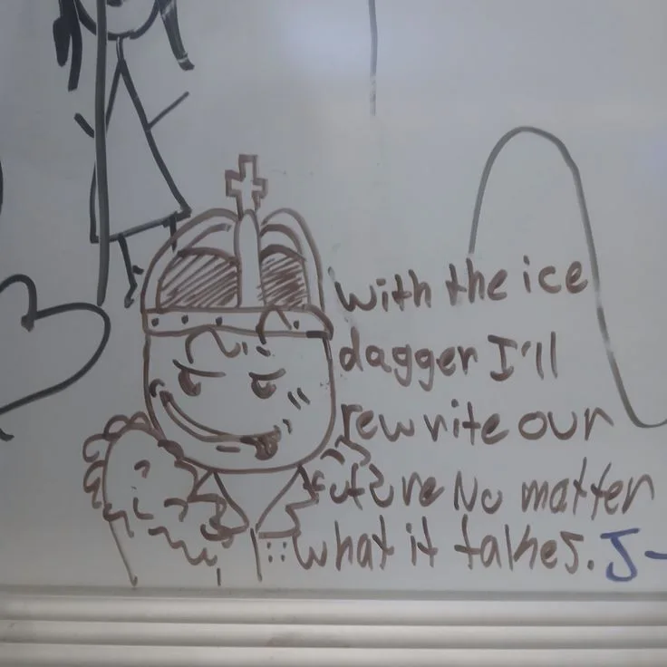 [out of arg,] My mom made my family write a quote on the whiteboard, the other member of my family wrote something normal BUT I CHOOSE A CRUEL KING QUOTE