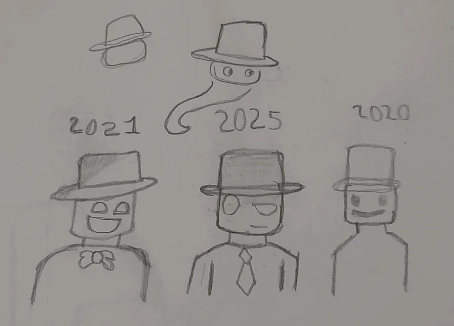 I draw "evolution of my ocs" 2020 ocs is very kinda oldest, 2021 ocs is better than old 2020 ocs but it looks like similar to Roblox because it remind me of Roblox characteristic and last one is 2025 ocs but he's only one that doesn't smiling at all due to 2025 is kinda worst yeah, like me. I had hard life back in summer 2025 it was suck