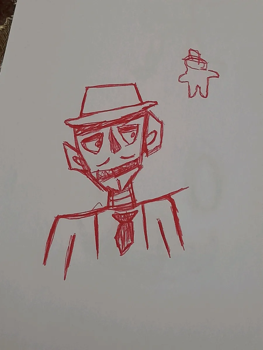 This red creepy guy is shadow lockjaw from trtf and I draw him full color red because shadow lockjaw doe have only black that he's "shadow" figure