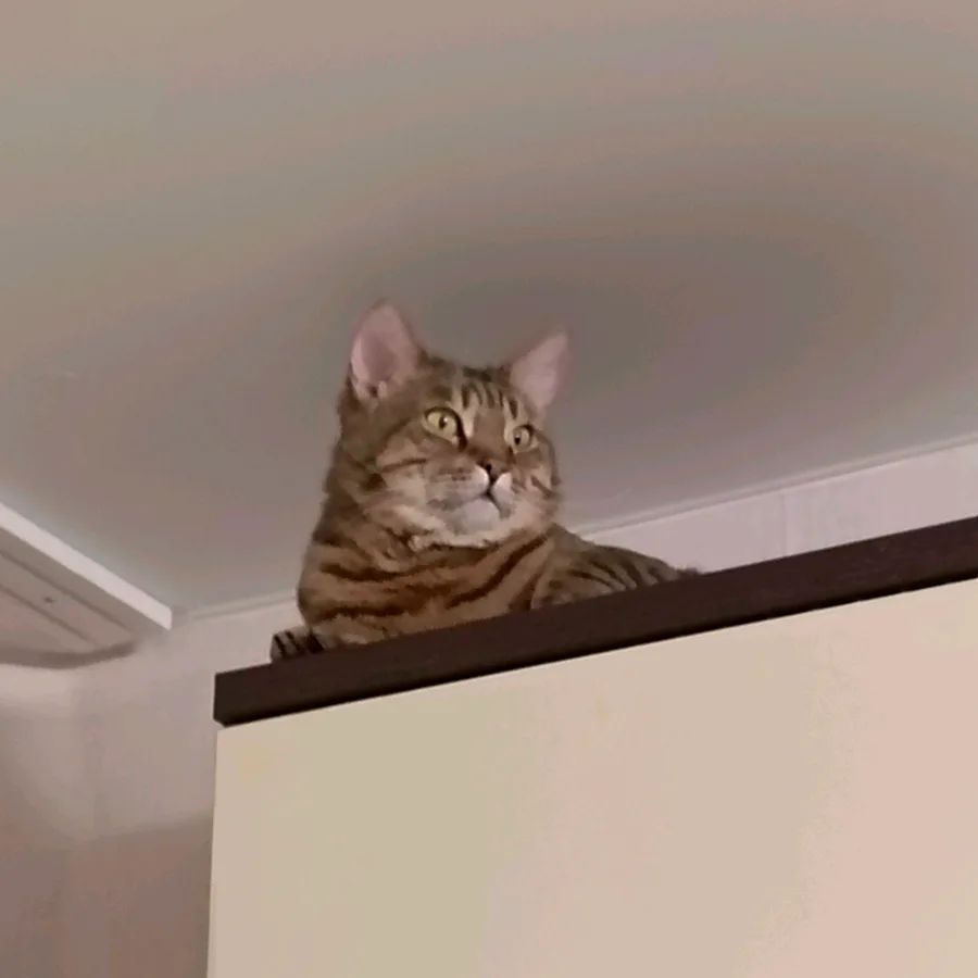 Afterwards, when we'd already put the wardrobe down, the cat jumped on it and almost knocked it over.