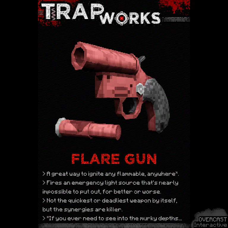 I'm a solo dev based in Taipei currently developing my pixelated passion project Trapworks, a brutal FPS game show escape room roguelike for PC/Steam. Tag along for development updates!
