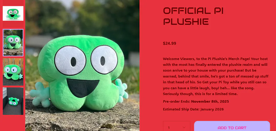 I'd buy the artful plush but I gotta get Pi so idk if im gonna get artful.. I gotta get that pi toy.. get a little laugh boy..