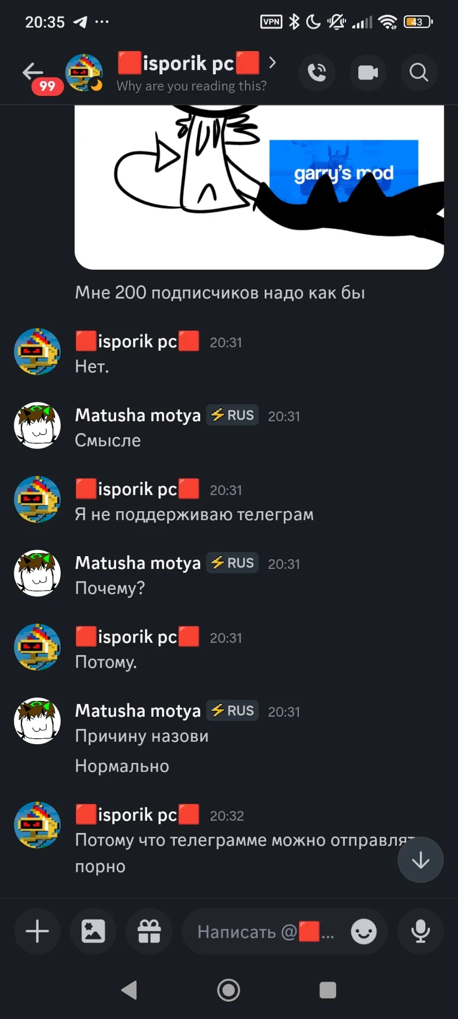 Короче мы обсуждали к нормальной адекватный теме дискорде к @isporik_pc_3