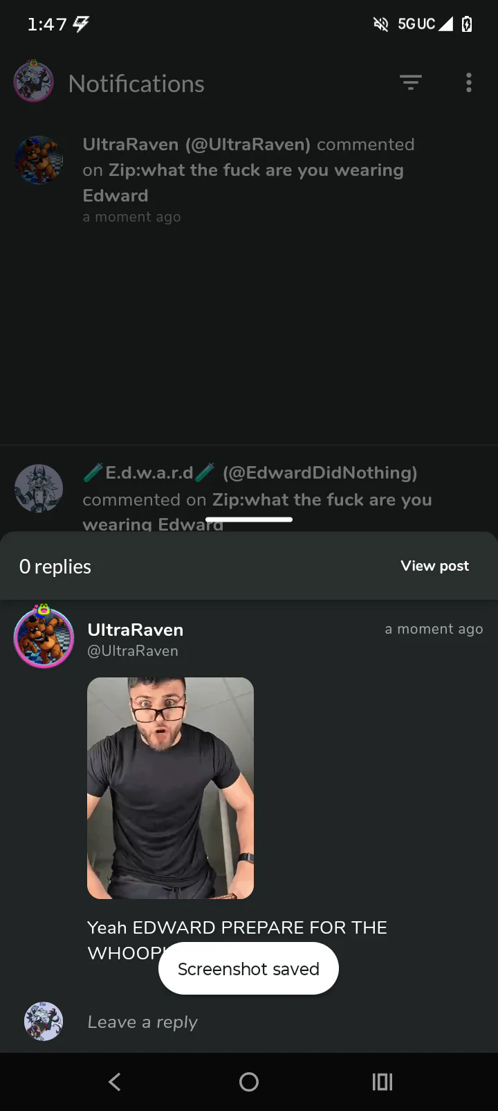Zip:what the fuck are you wearing Edward