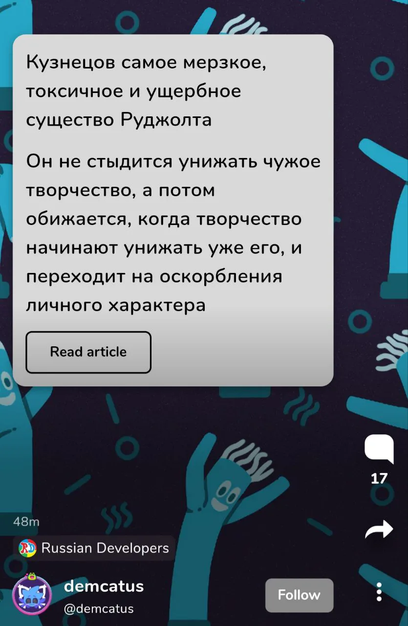 Километровый пост в артикле, у-у-у-ух, байт хомячка Кузнецова удался. Самое время прочитать.