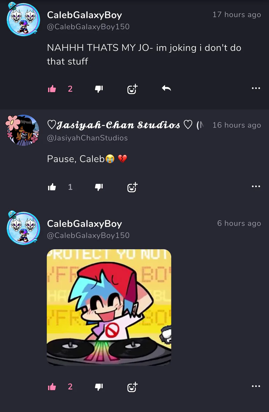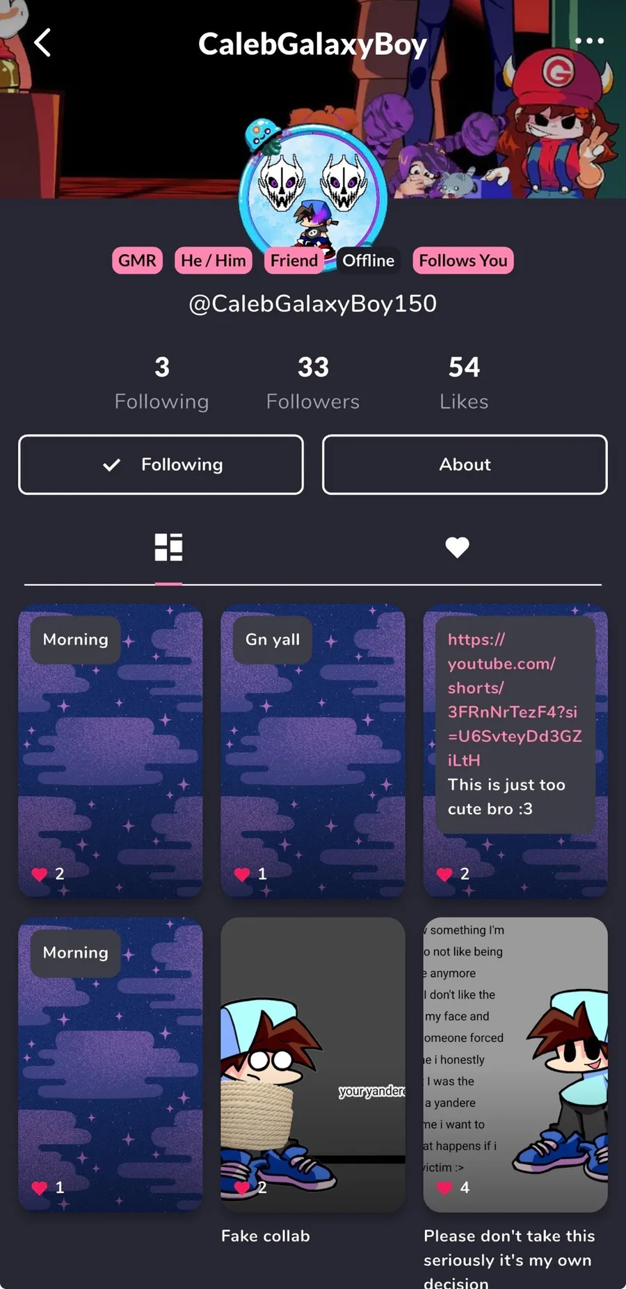 Iโve never seen Mika_Kit following a FNF fan before:/