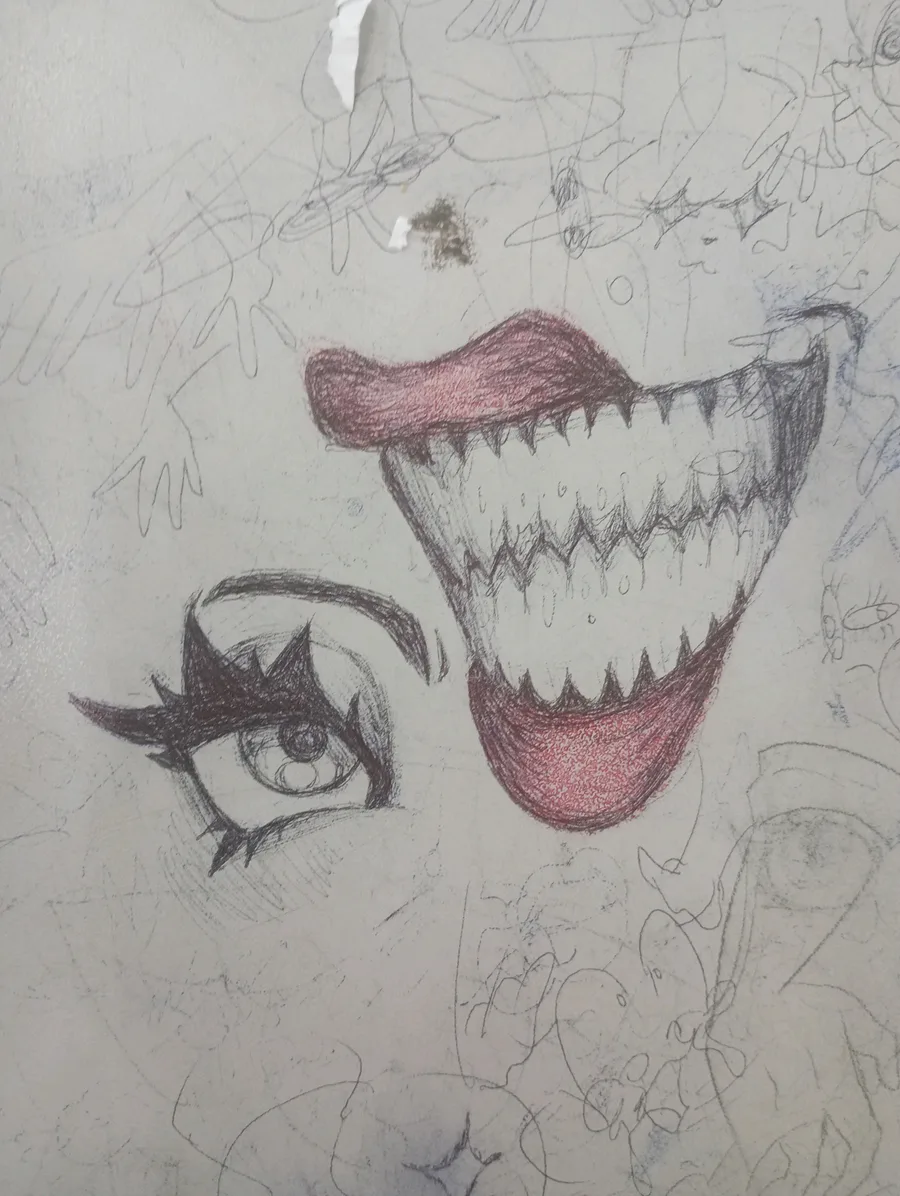 Drawing random things on my school desk