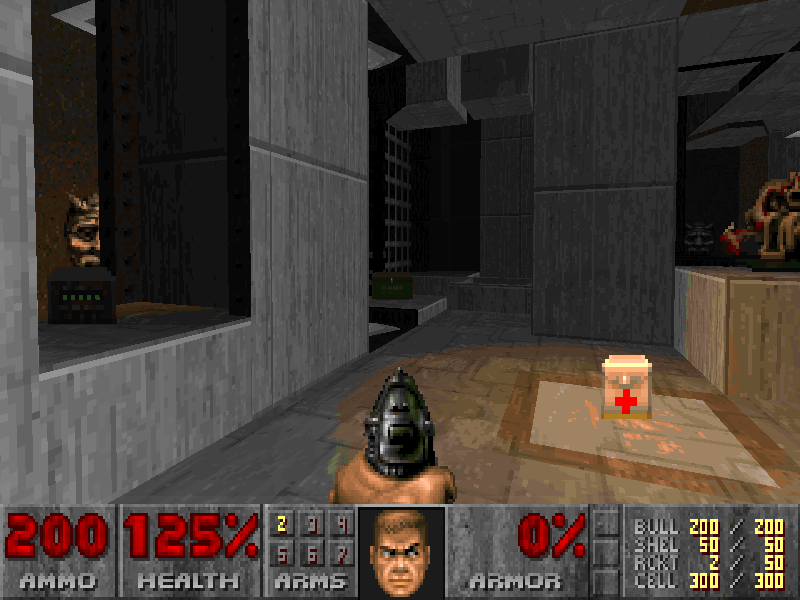 Screenshots of new zrdoom : enhanced build that features more height variation, platforming, etc... #doom #procedural