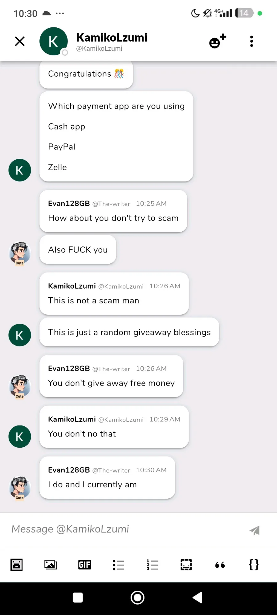 This happened a while ago, but it's still funny, the account is banned at this time so you shouldn't take any action.