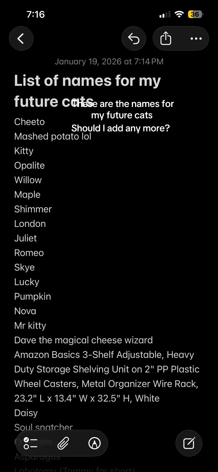 My list of future cat names