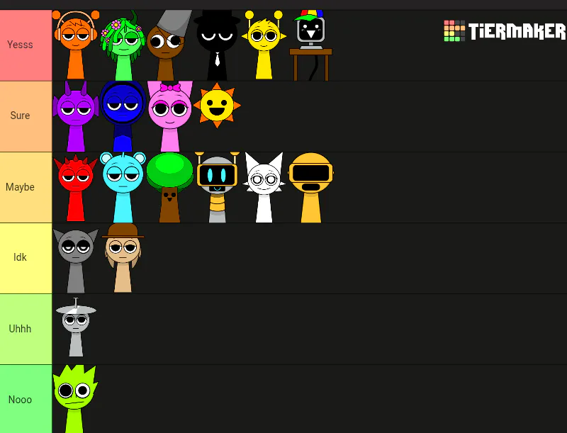 I ranked which sprunki character i'd hang out with