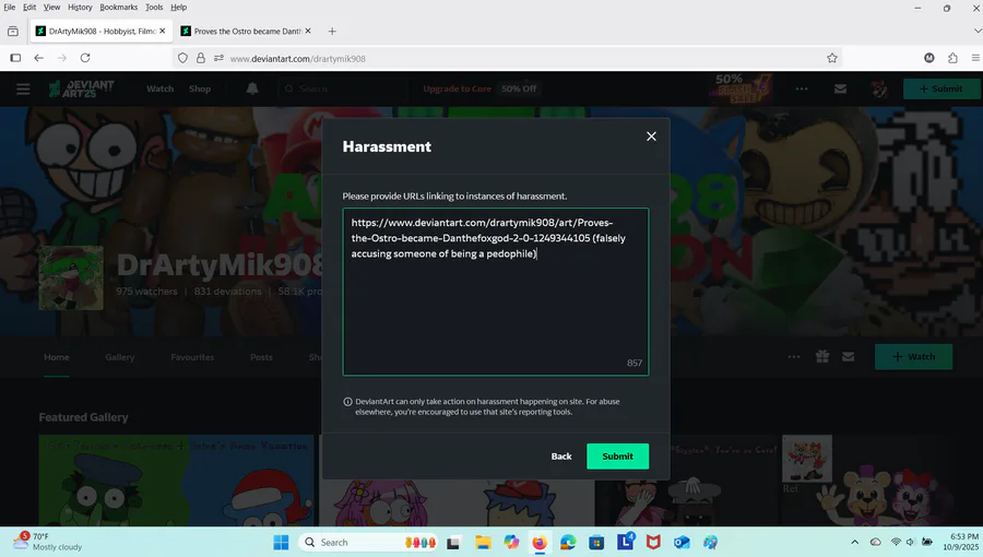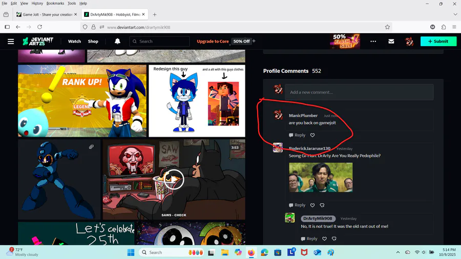 nice comment i left on arty's deviant art post