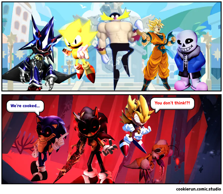 Super Sonic Super Eggman, One bounce civilian, Neo Metal sonic, and Sans Vs.