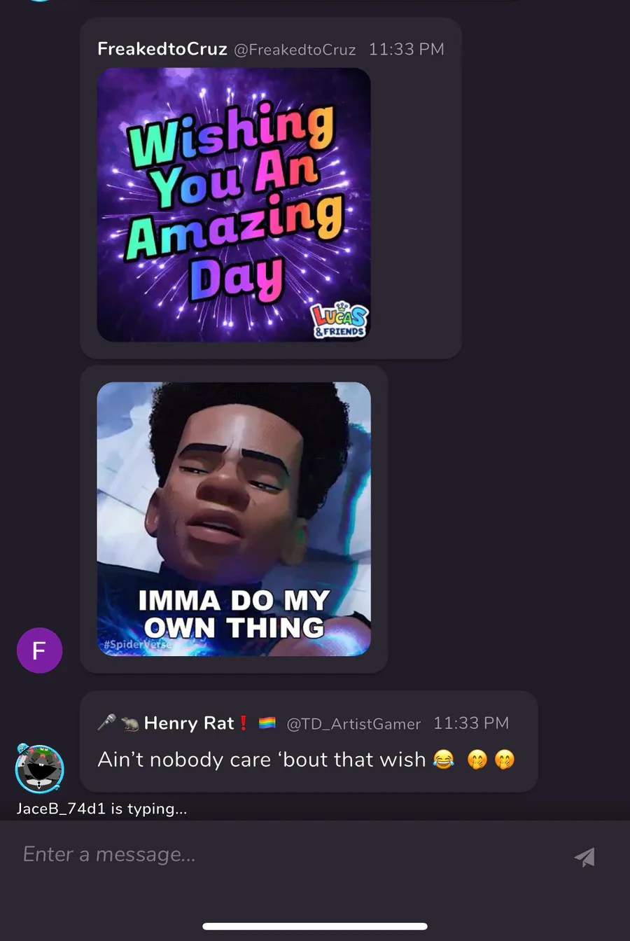 Donât harass anyone shown here. I made this post cuz I found it a little funny. The guy I was talking to was disrupting us so thatâs why I was being rude. Spammer.
