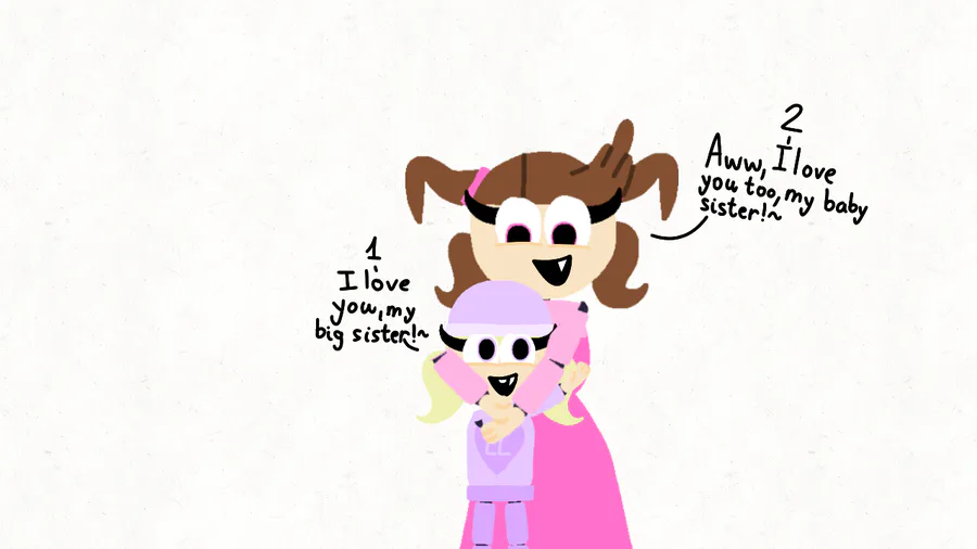 My little sister hugs me and loves me!~