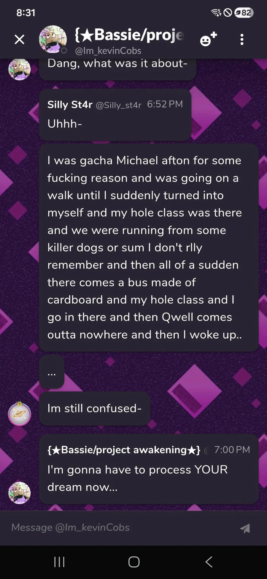Casual conversation between me and @Im_kevinCobs
