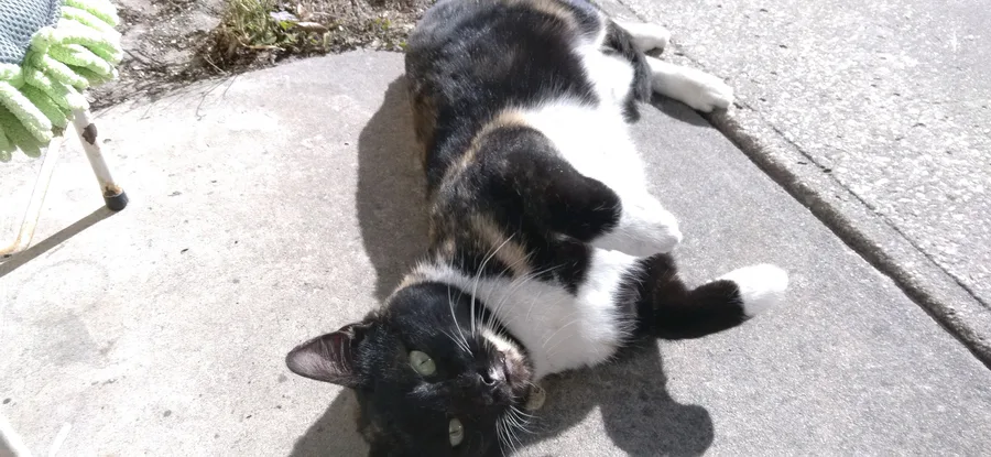 Silly ah Kitty this cat is always at my house she really silly I was just sitting outside and she rolles over and I clean the dirt off her and she rolls over again ๐I clean her again I think she just likes it when I wipe it off her ๐๐