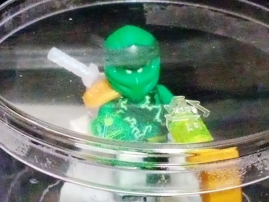 i made this display of lloyd using a cookie container from tours le jours #Creativity #LEGO #Ninjago