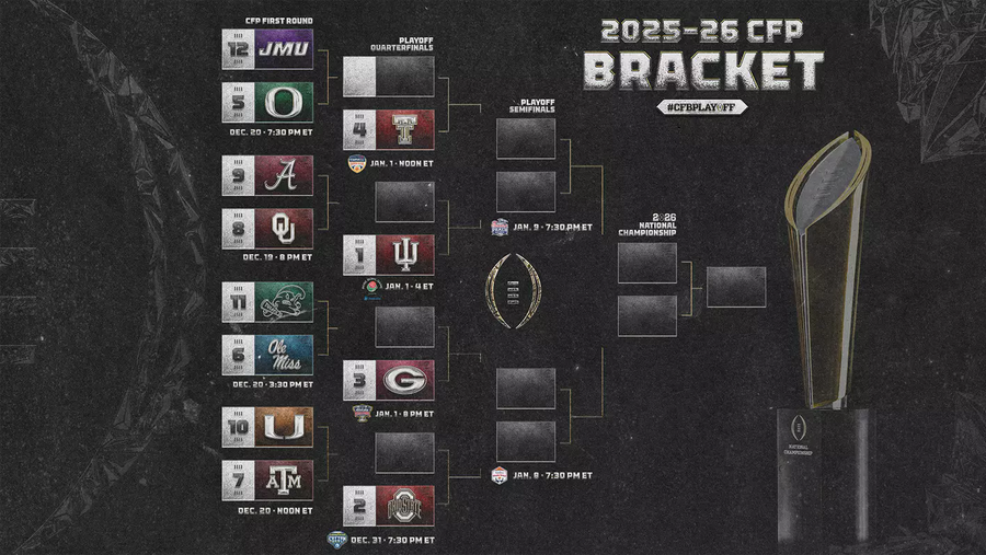 Here is the CFP bracket. 1-4 seeds receive byes. The highest ranked team in the first round will play at their home stadium.
