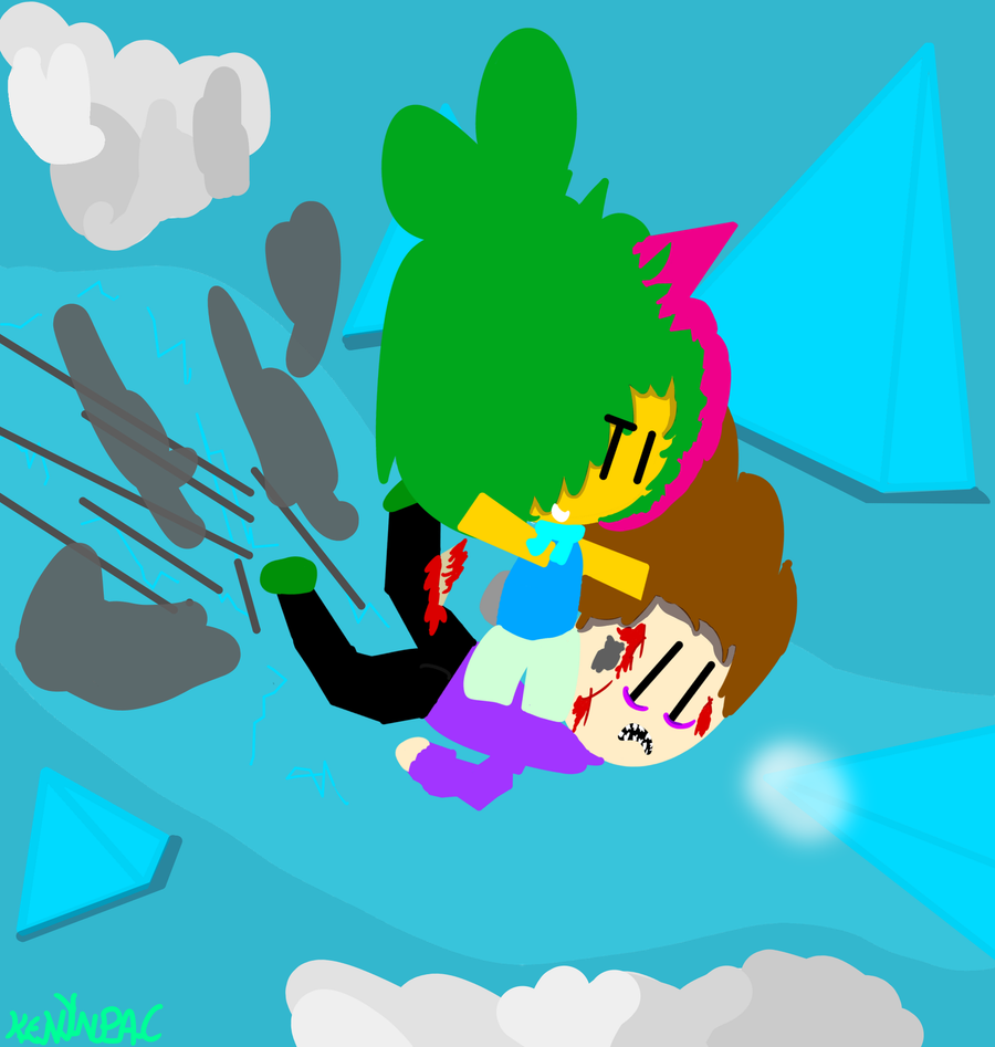 Remake of that drawing i posted,i made that other one 1 year ago and i remaked it with nooby's new style (but still with the scarf) and jacker with more pain than ever,It's supposed to be like they god stuck on a mountain and nooby uses jacker as a board.