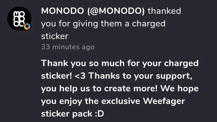 yw (your welcome) buddy I hope I can give you another charged sticker @MONODO ![]()