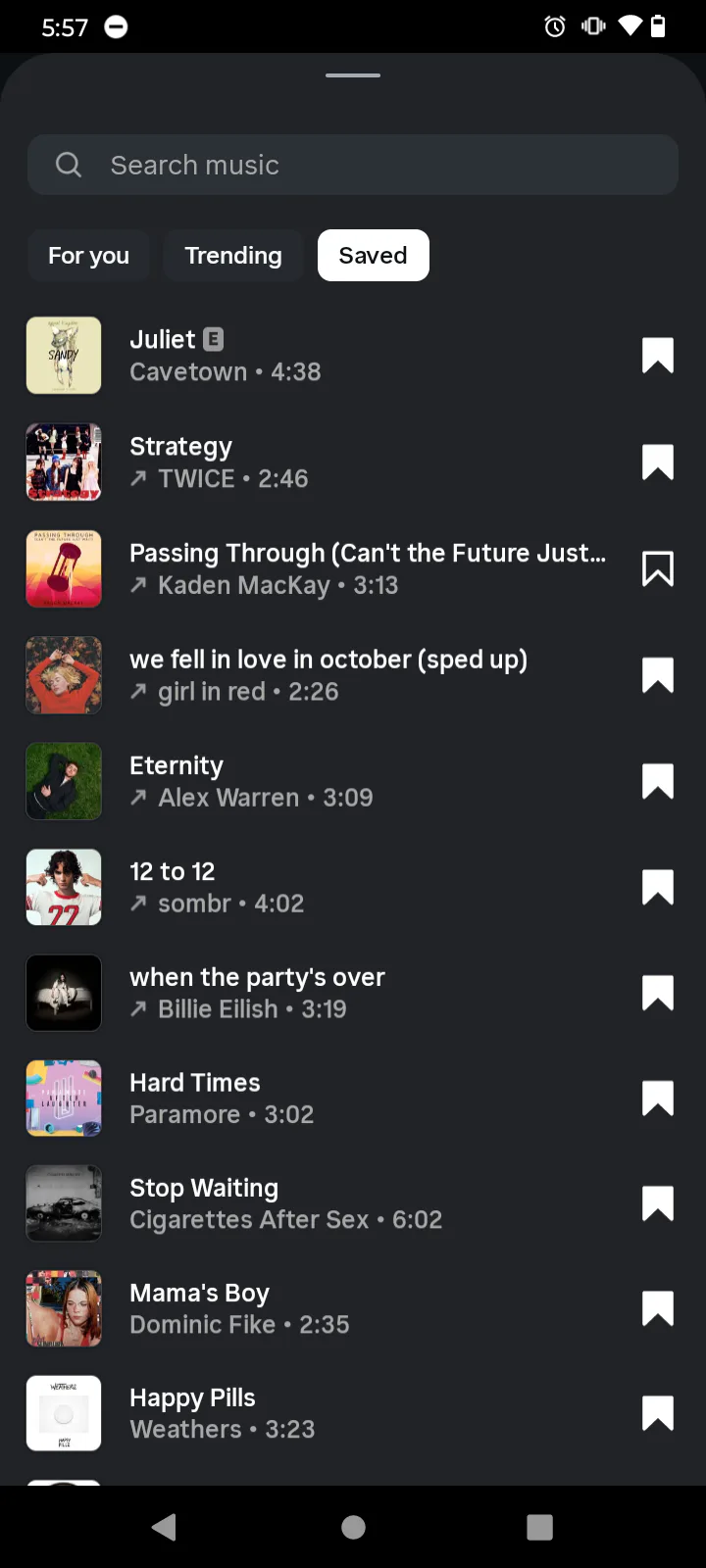 Saved musics !!
