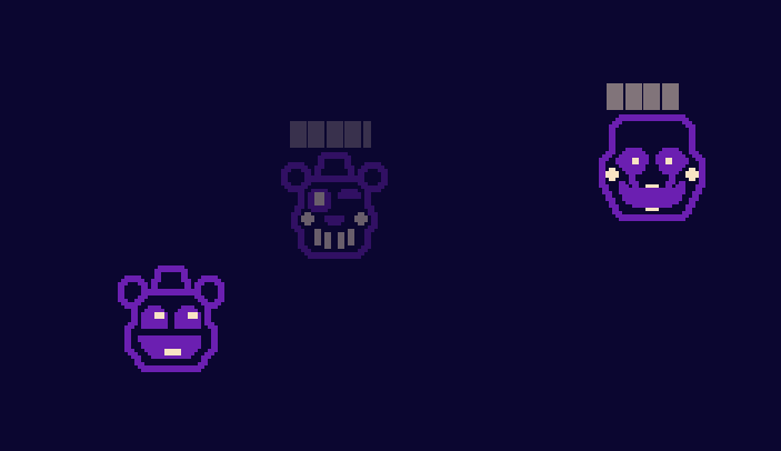 The overworld is coming together pretty well. There's an entrance to the main game, the shop (as seen in the last post), a couple NPCs to talk to, and there's a way to unlock Springtrap now (that is Bonnie in the screenshot, not Springtrap).