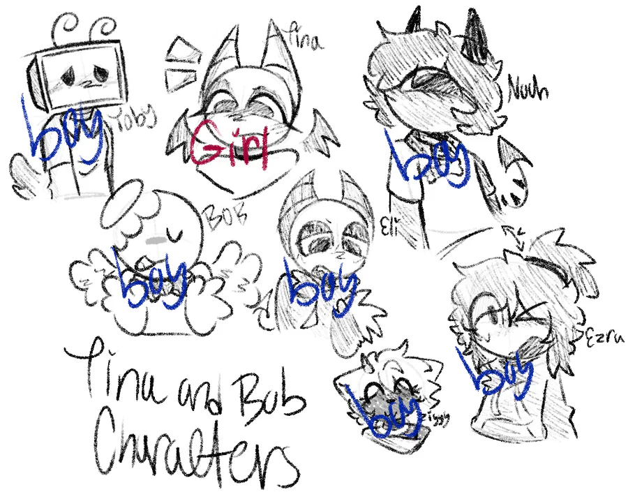 Not sure if any of y'all miss Tina and bob but here's a Lil doodle page of the characters so far