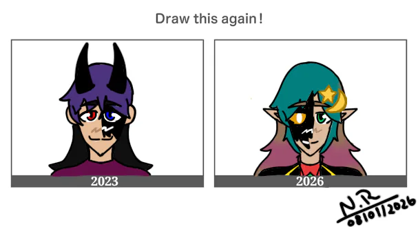 The drawing is my main OC Noelia (Noelia from My Undertale Au: StoryOrigins) design from 2023 vs the design of this year 2026