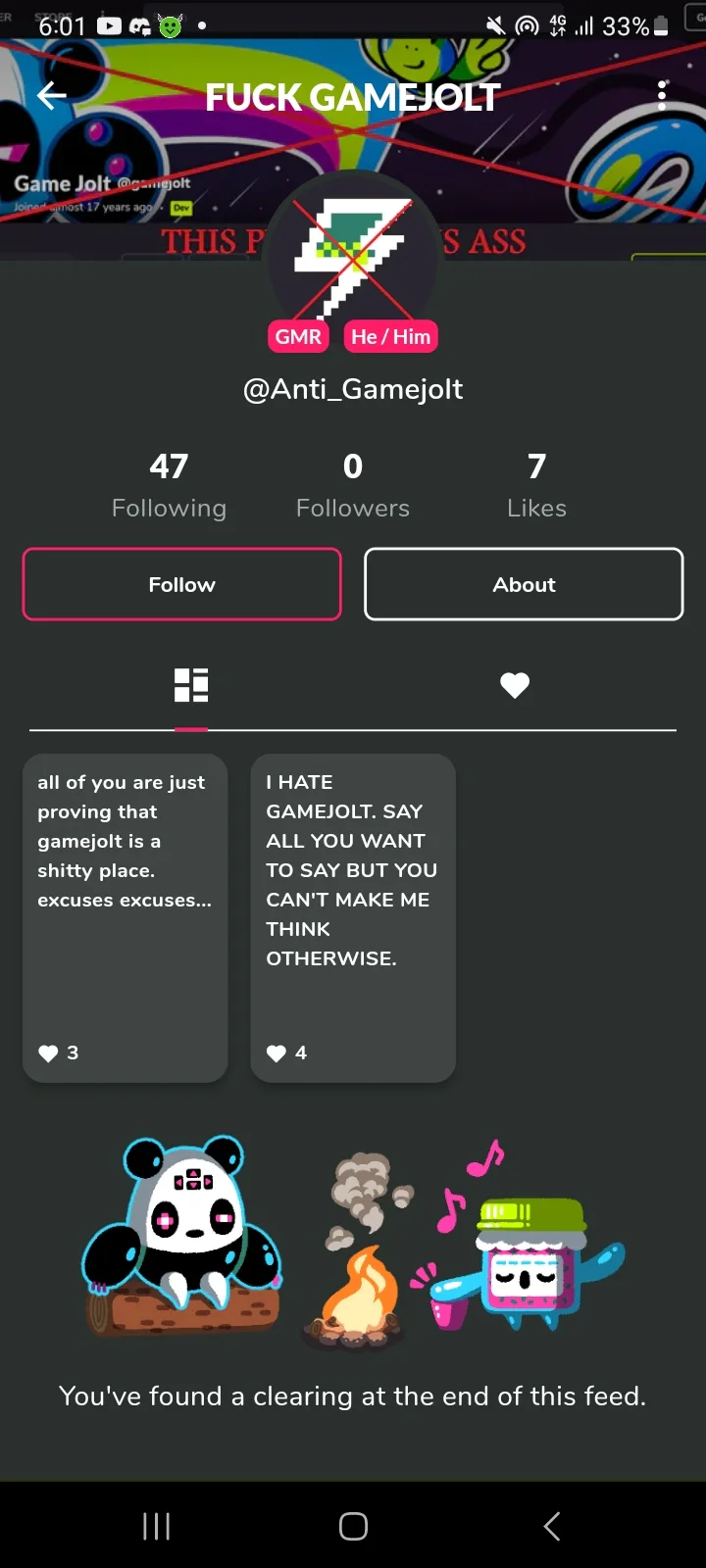 Look at dumb user who hating gamejolt and being "anto-Gj" just when (or then) why they joined and Using gamejolt