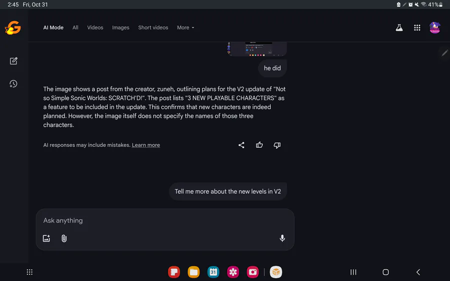 google gemeni thinks that shadow, metal sonic, and knuckles won't be in v2 (also yes they will be the 3 new characters)