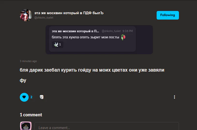 давно я у него не глянул чо за посты у него, а он уже бесится.