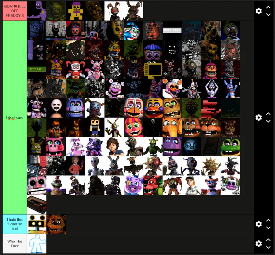 my fnaf character tier list!!!
