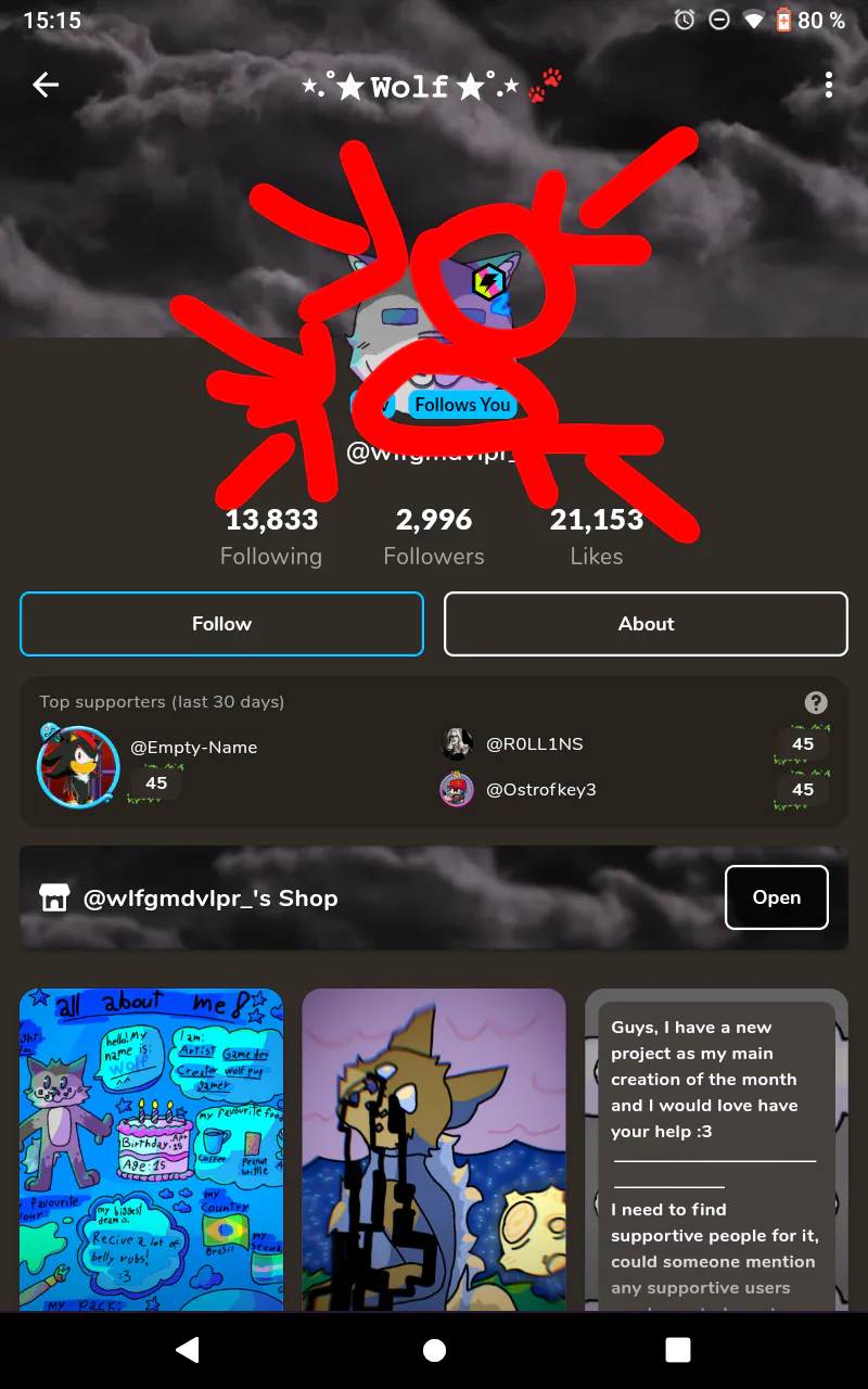 W Purple Samuel for using some of my artwork for your group :)! ( W = winner)