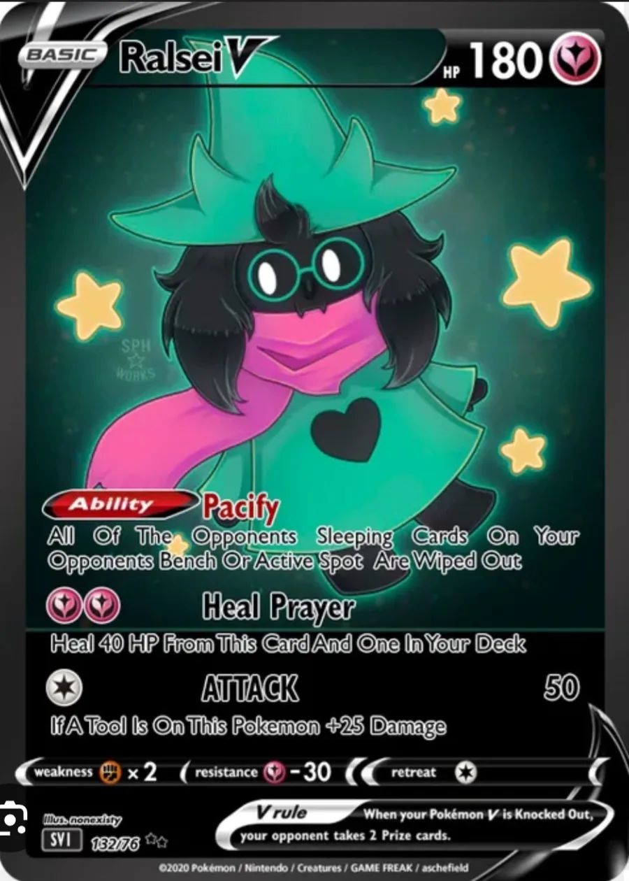 Here's a bit of my completely on brand PokΓ©mon deck, COMPLETLY ON BRAND DONT BOTHER CHECKING DONT CHECK ITS 100% REAL #deltarune #ralsei #pokemon #undertale #delta #cute #real #on brand #card #myhpisrunninglow
