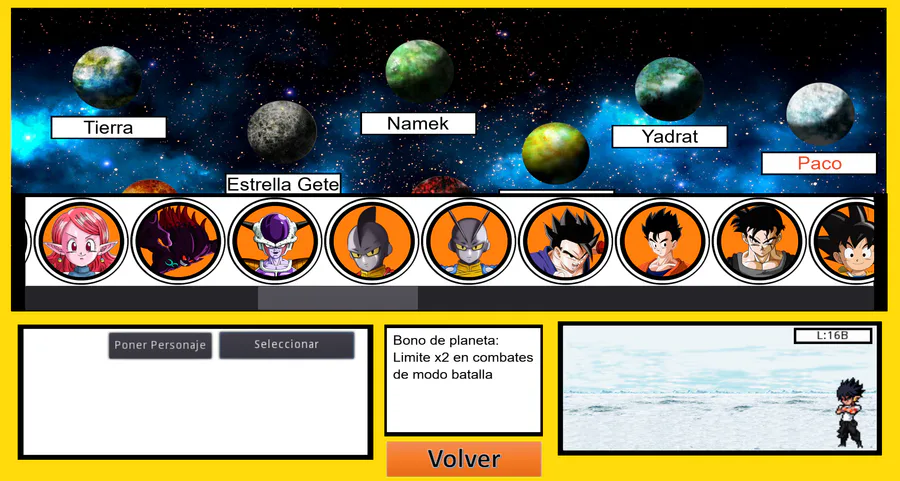Nueva actualización donde se han mejorado los sprites de Goku y Vegeta. También se han añadido los personajes Gine y BlackXeno. (Versión 2021)