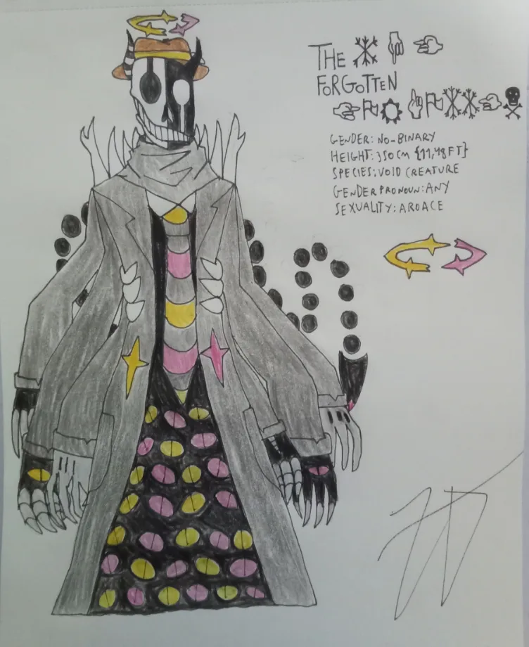 (Okay, you must be wondering "why did you make him?", and I have 3 answers, 1- I like multiples of 5, and I had 44 OCs, meaning he will be OC N°45, 2- I wanted to have an OC based on Gaster, Friend, and Roaring Knight, and 3- I wanted to have an OC to make a crazyass plot twist in my OCs lore)